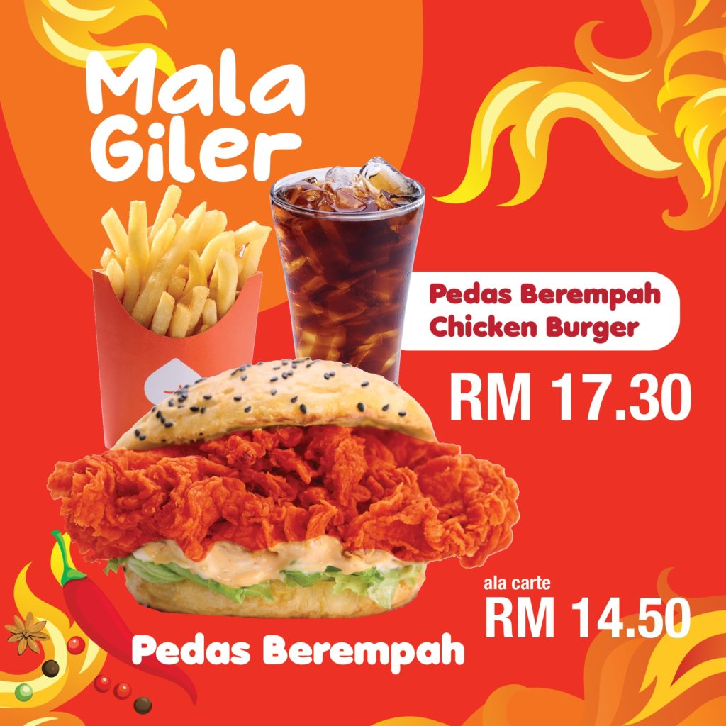 Introducing the Pedas Berempah Chicken Burger at Abox! This bold new addition features a crispy, breaded chicken patty marinated in a flavorful blend of Mala spices, delivering the perfect combination of heat, crunch, and savory goodness. Inspired by Sichuan cuisine, this burger is designed for those who love a spicy kick in their meals. Visit any Abox outlet today to experience this exciting new flavor that’s sure to elevate your fast food experience!